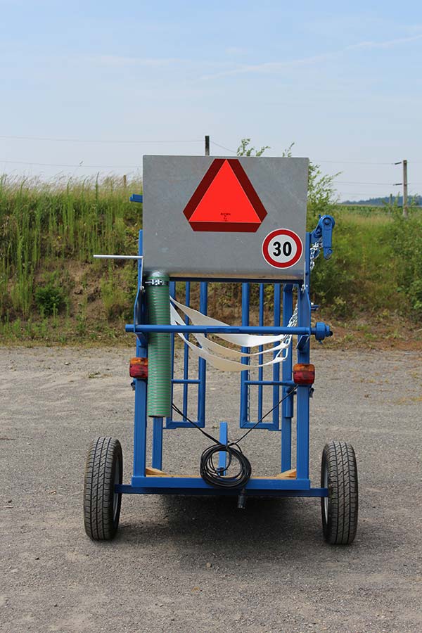 Für diesen Anhänger wird weder Fahrzeugausweis noch Kontrollschild benötigt und kann an Traktoren sowie an Motorfahrzeugen gezogen werden.
